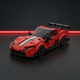 The iconic long tail profile, the dark bodywork sliced by vibrant orange accents : every aerodynamic detail that makes the Super Sport unmistakable, reproduced with obsessive precision.